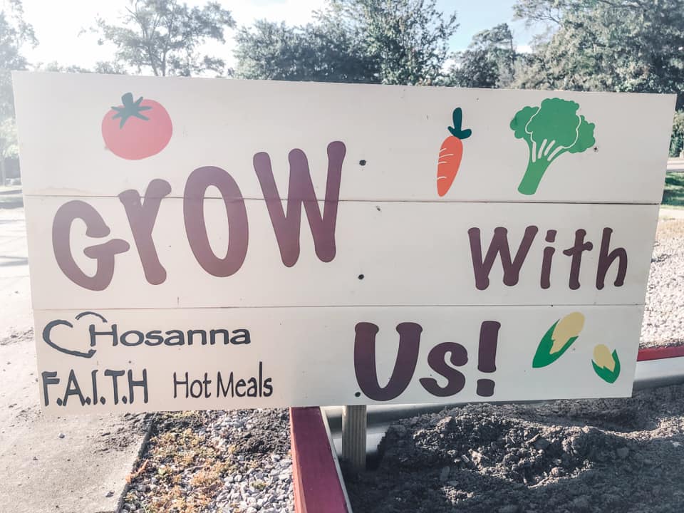 When we first built the garden boxes, it was an average of $225 to build and fill a box with soil. We built our garden boxes to be 4 feet wide x 8 feet long and 2.5 feet tall. The frames are made from 2×6’s with metal tin sides and we painted them with a barn paint to help water proof. There is no bottom. I decided to build them this size so small children (at the time Hosanna had a pre-school on-site) could see the garden and it afforded the ability to sit and handle weeds. Now with increases on lumber, I would estimate the same build would average $280.